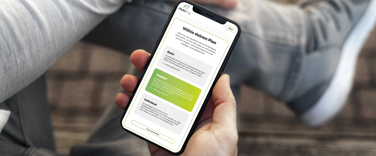 Warum der Online-Angebotsrechner so innovativ ist? Zum einen sparen wir uns durch die Besichtigungstermine viele Fahrten und können so CO2 wesentlich reduzieren. Zum anderen aber, möchten wir durch unsere transparente Preisgestaltung die gesamte Branche verändern. Statt der typischen "Pi mal Daumen" Kalkulation gibt's bei uns faire und transparente Preise. Egal ob du ein Start-Up hast oder eine etablierte Anwaltskanzlei - bei cleanfrog hängt der Preis nur von Größe, Leistungsumfang und Häufigkeit der Reinigung ab. Nicht aber von dir und deinem Unternehmen.